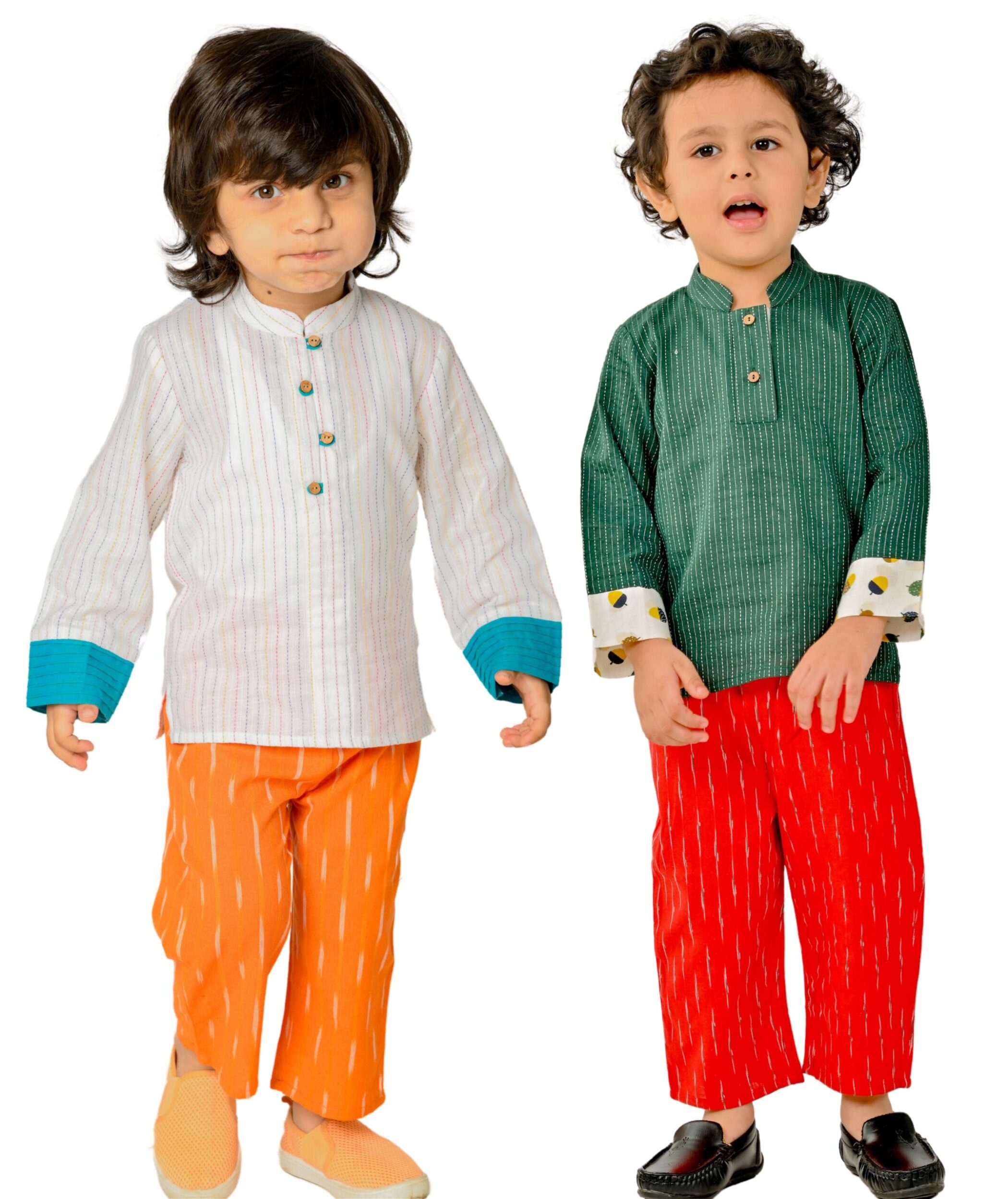 Baby Boys Cotton Set Shirt With Pant – White:Orange & Green:Red
