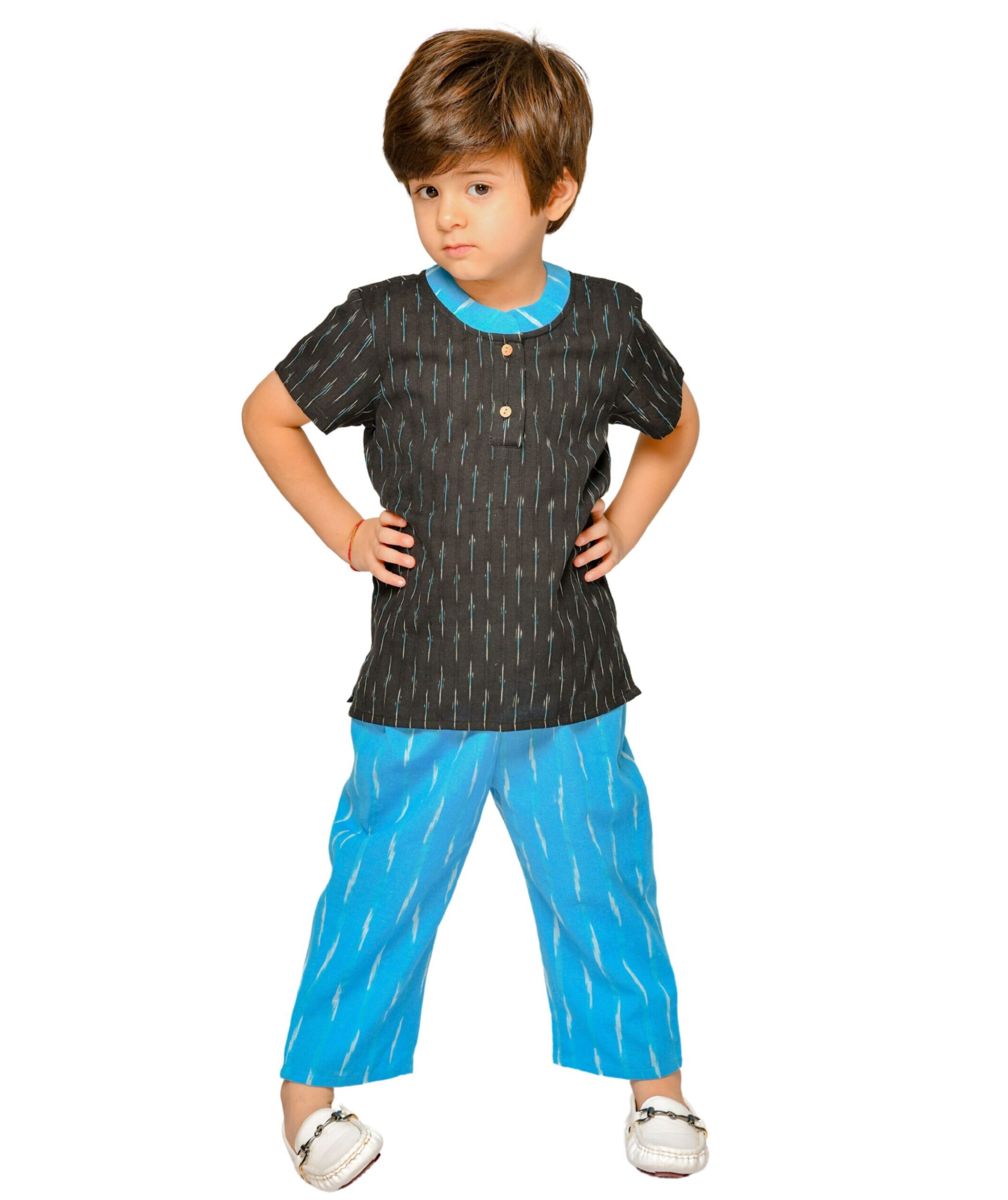Kids Boys Cotton Half Sleeve Shirt Pant Clothing Set – Blue:Black