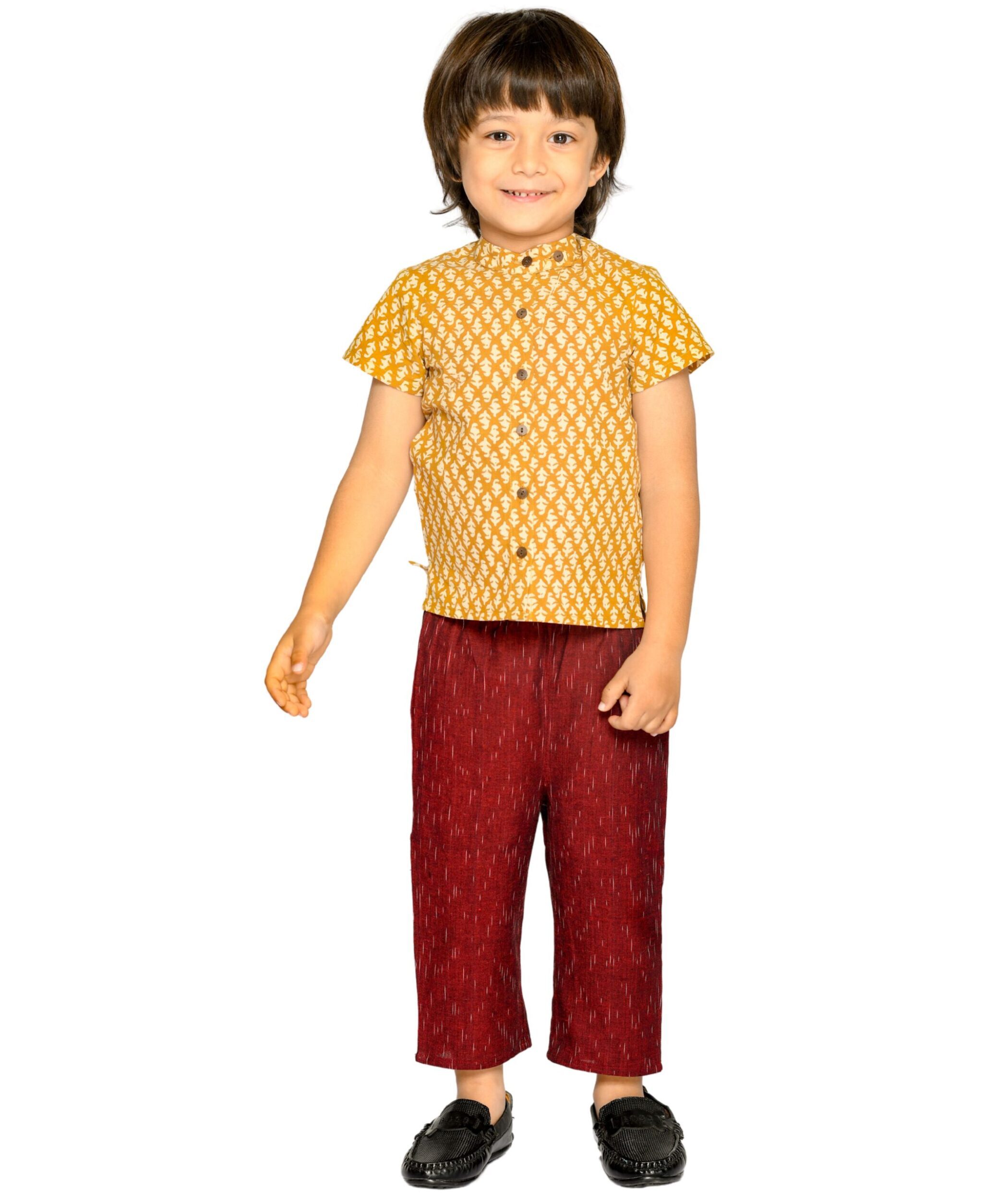 Kids Boys Cotton Clothes Half Sleeve Shirt Pant – Yellow:Maroon