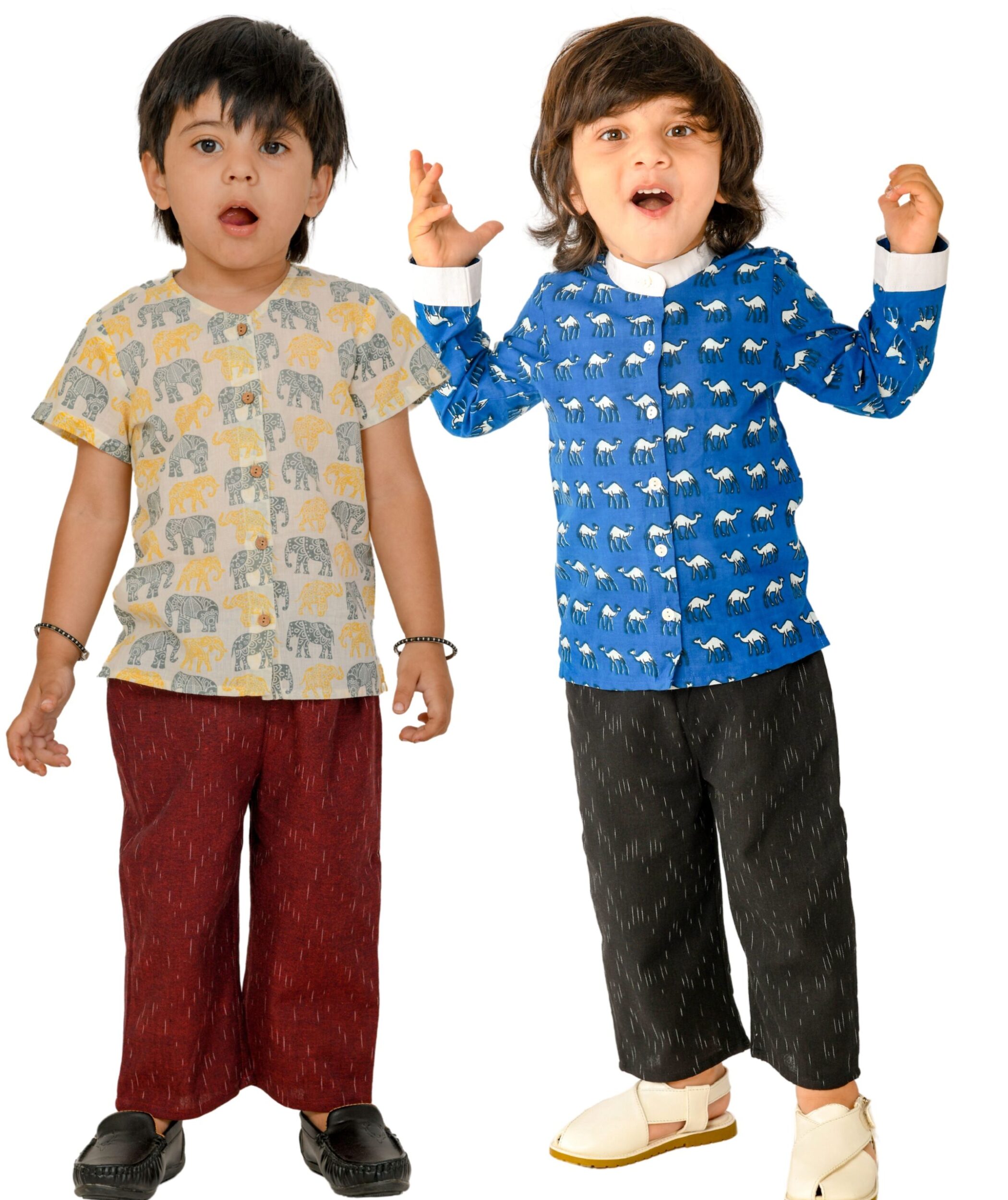 Baby Boys Cotton Shirt Pant – Blue:Yellow & Grey:Maroon Combo