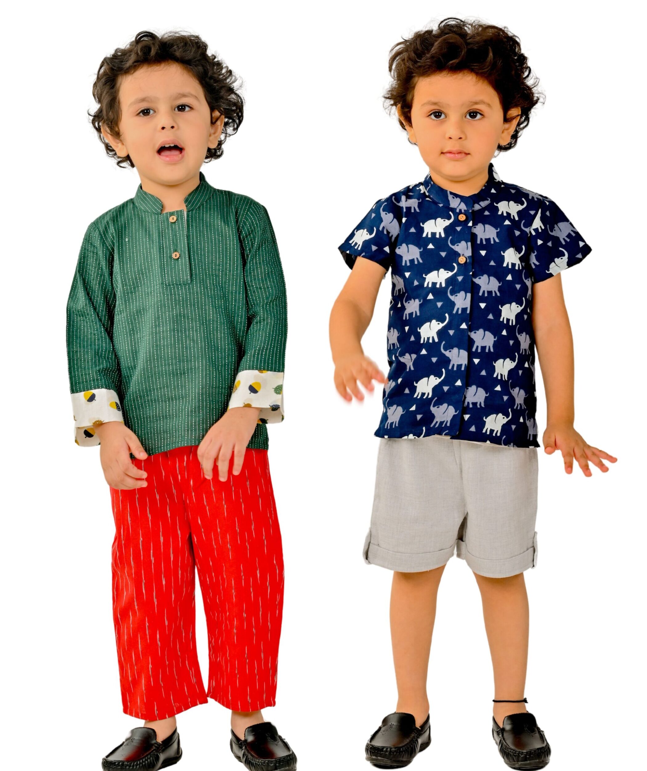 Baby Boys Cotton Shirt, Pant, Shorts Set – Green:Red & Blue:Grey