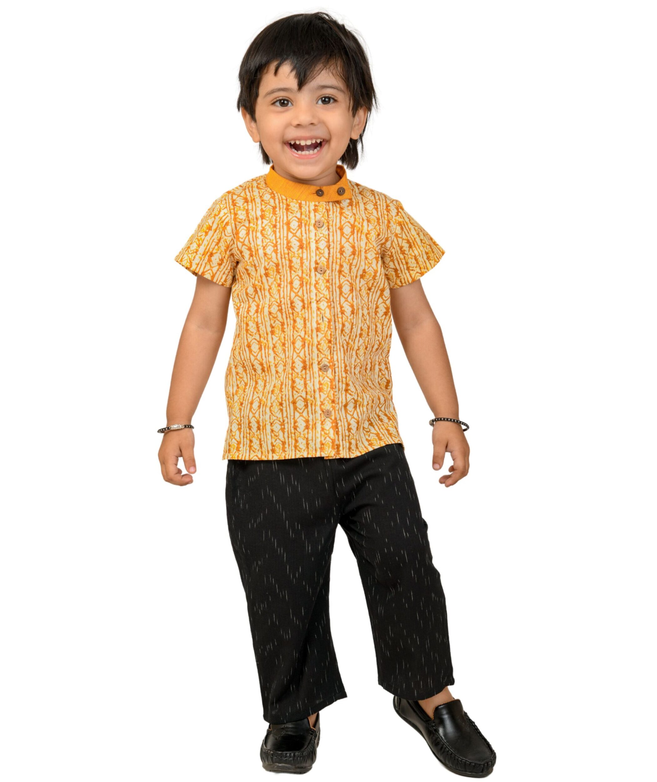 Kids Boys Clothes Festive Wear Shirt Pant Cotton Set – Yellow:Blue