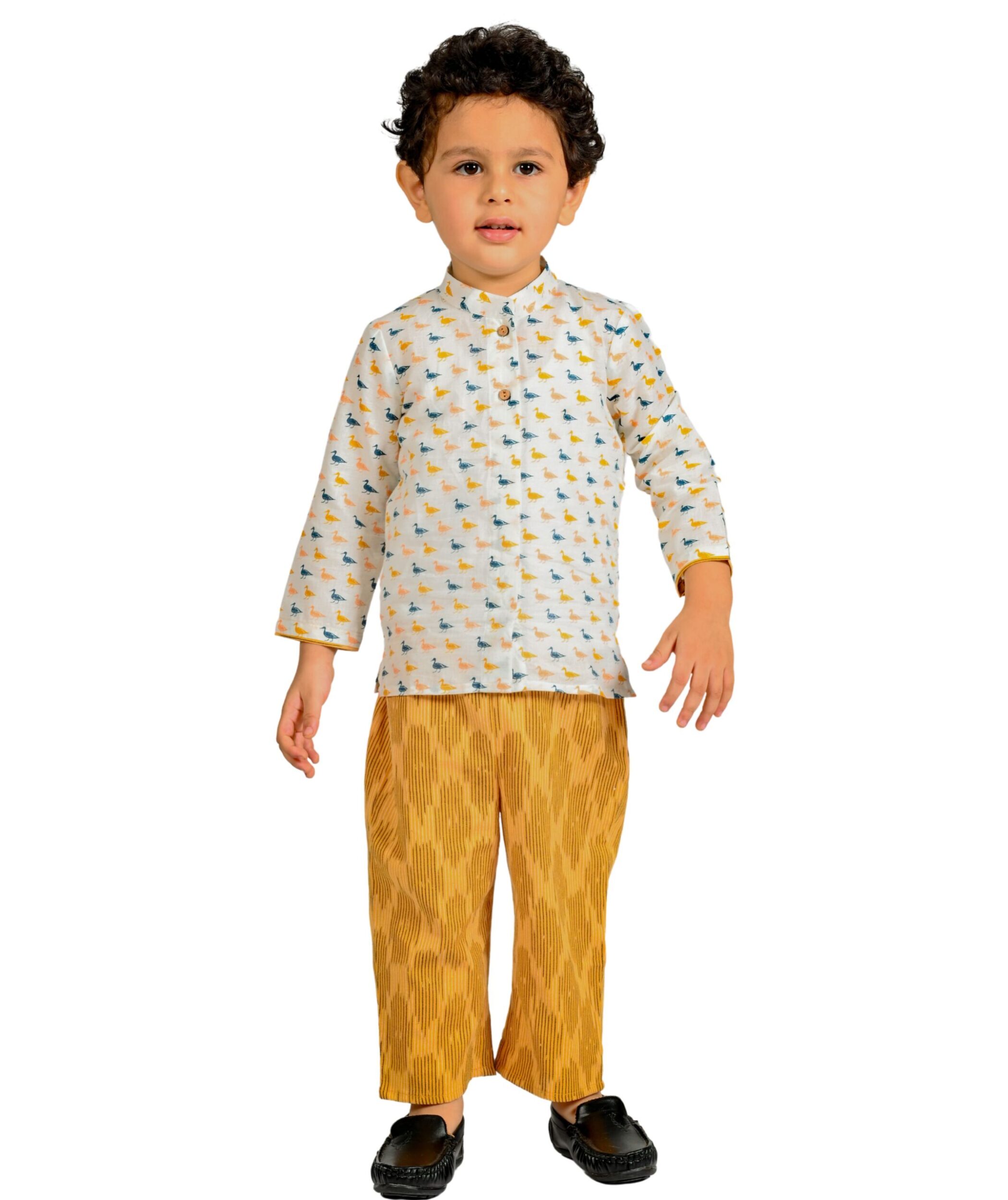 Baby Boys Cotton Shirt With Pant – White:Orange & Yellow:Blue