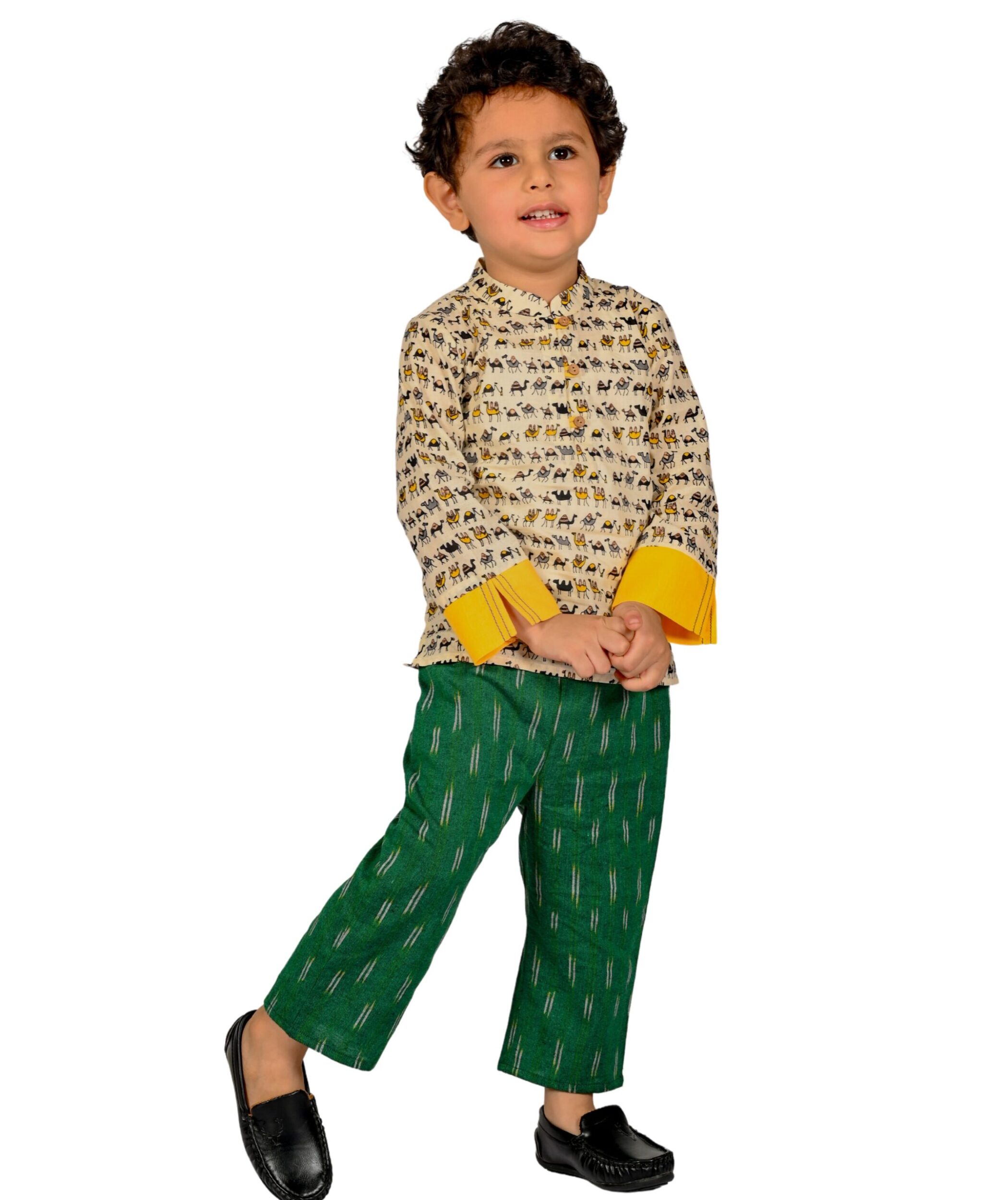 Kids Boys Cotton Shirt Pant Set – Beige:Green & Grey:Maroon