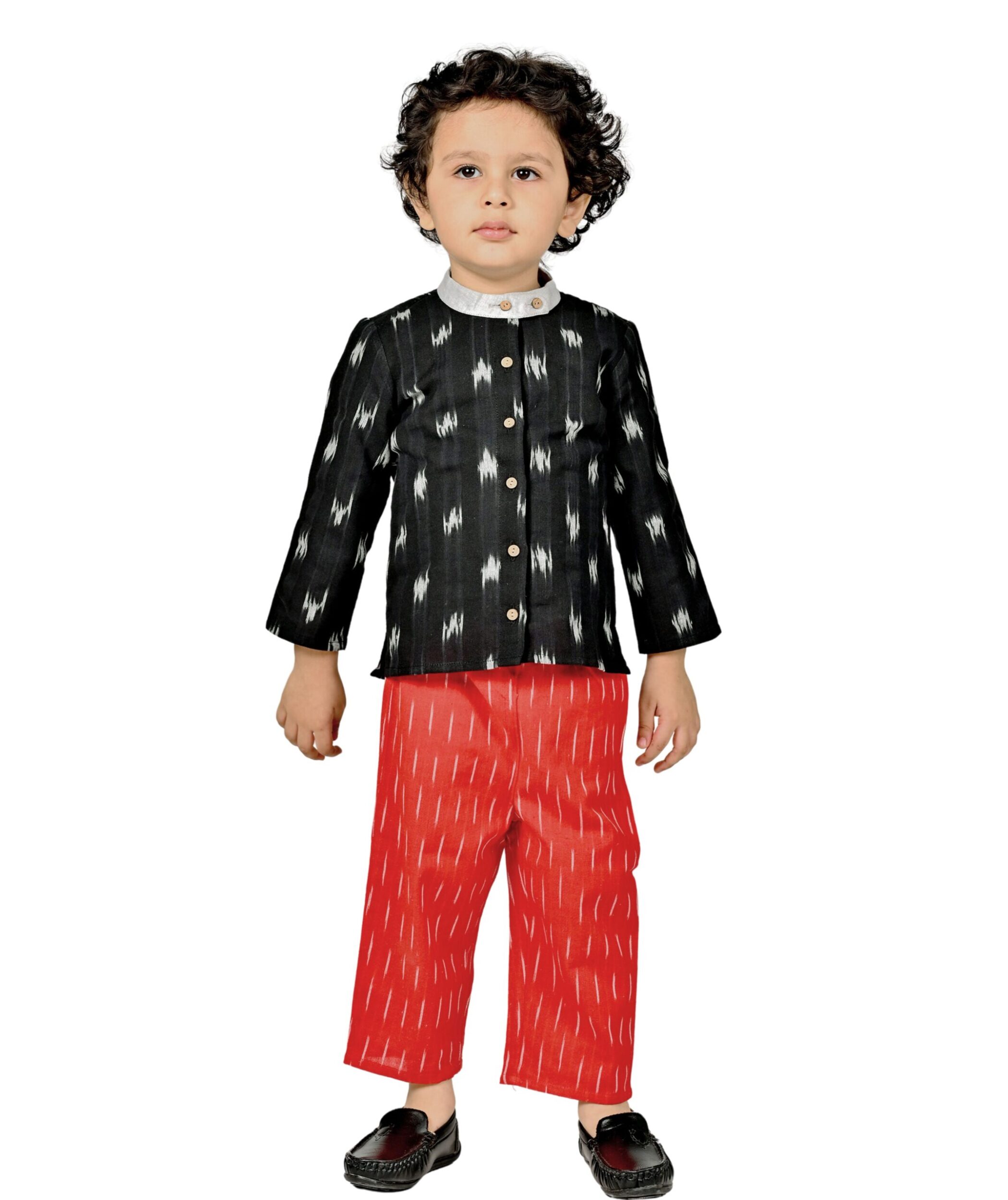 Kids Boys Cotton Shirt Pant Party Wear Clothes – Black:Red Set