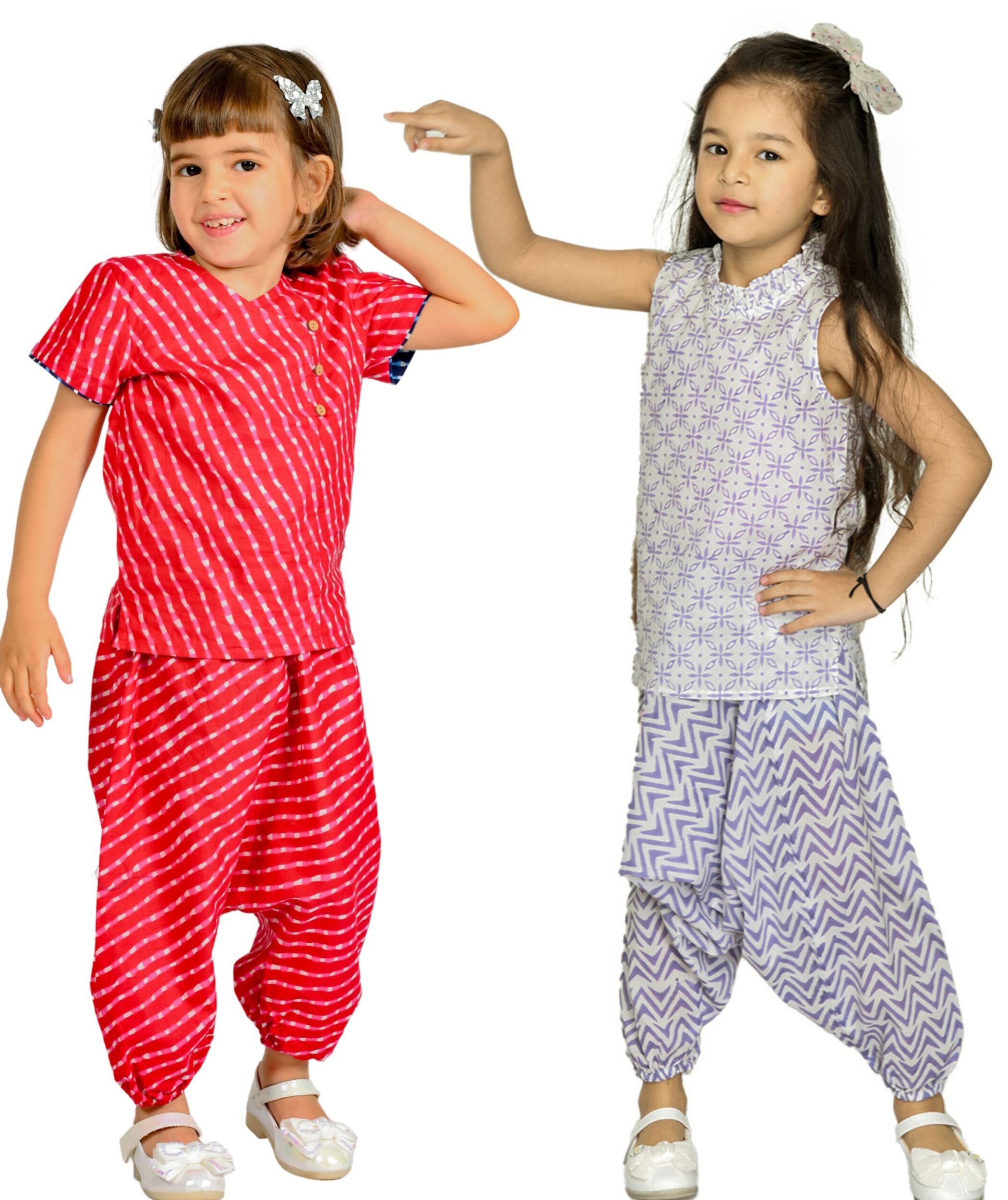 Kids Girls Festive Wear Clothes Cotton Sets – Blue & Pink:Yellow