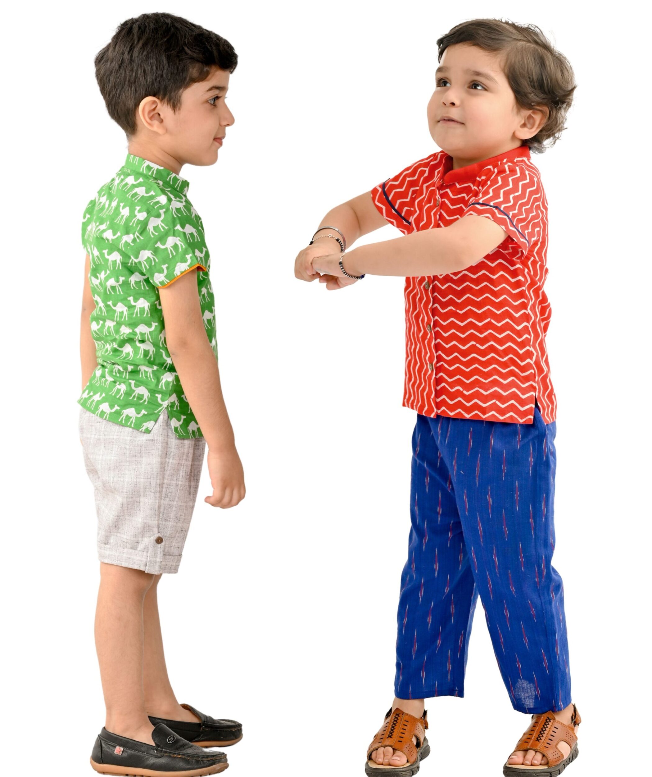 Kids Boys Clothes Birthday Party Wear – Red:Blue & Beige:Green
