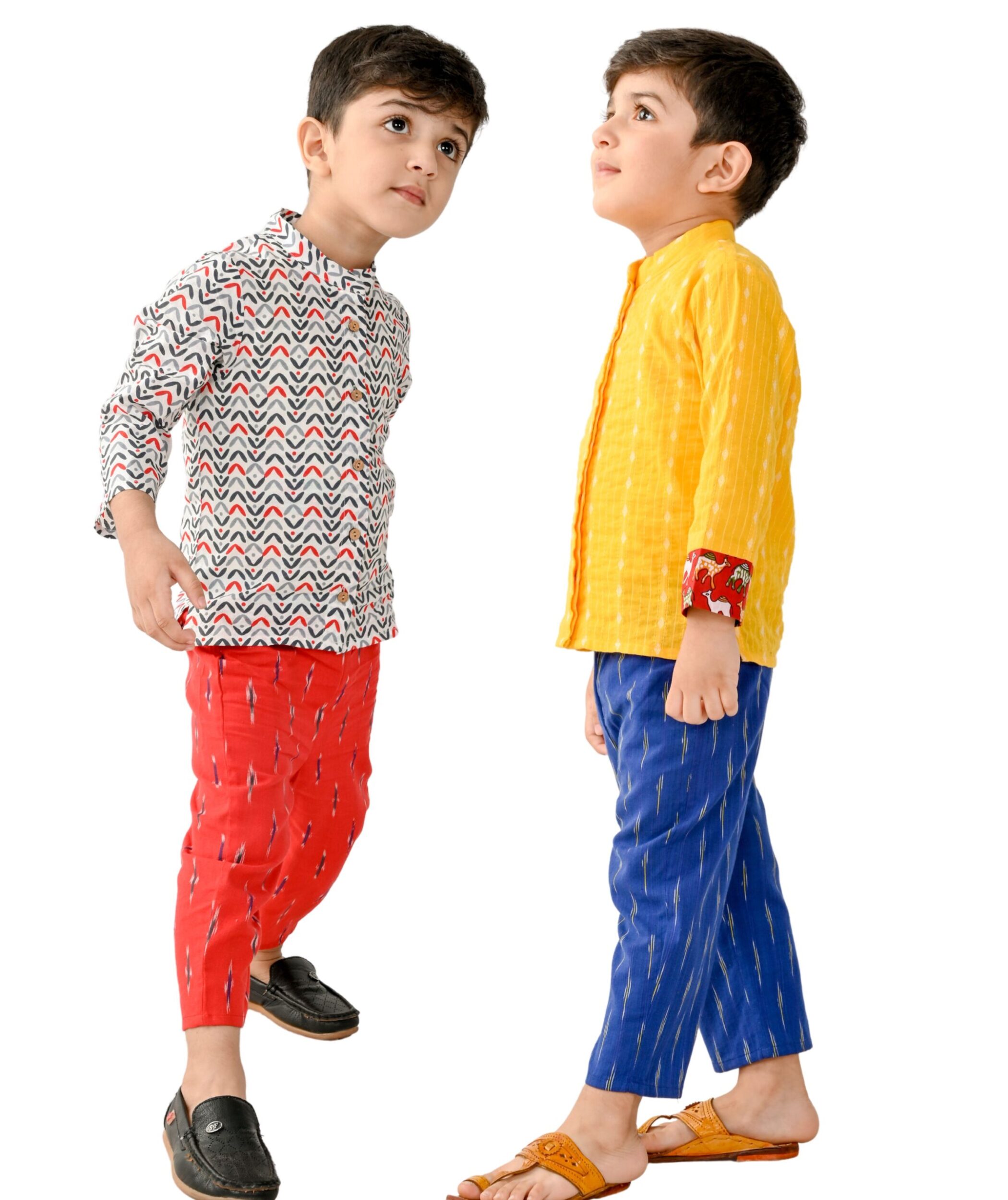 Kids Boys Full Sleeve Festival Clothes – Yellow:Blue & Green:Red