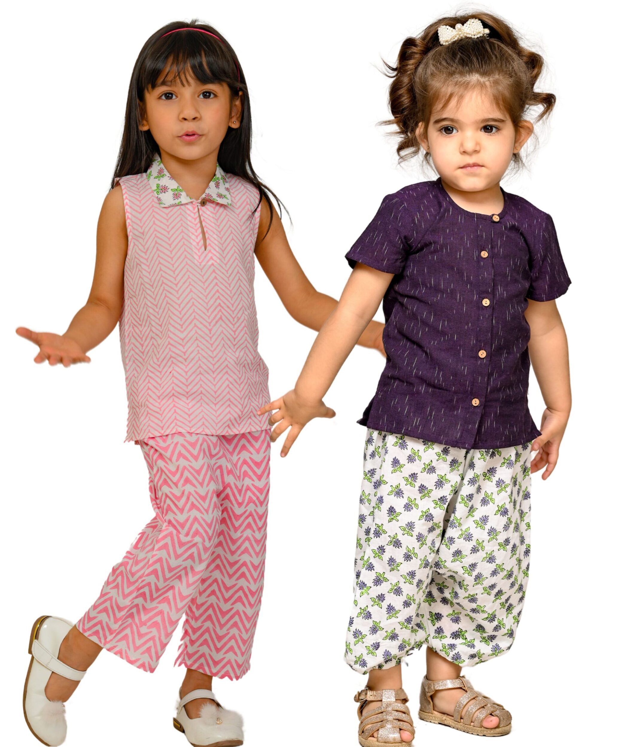 Kids Girls Cotton Clothing Sets – White:Pink & Purple:White Outfits