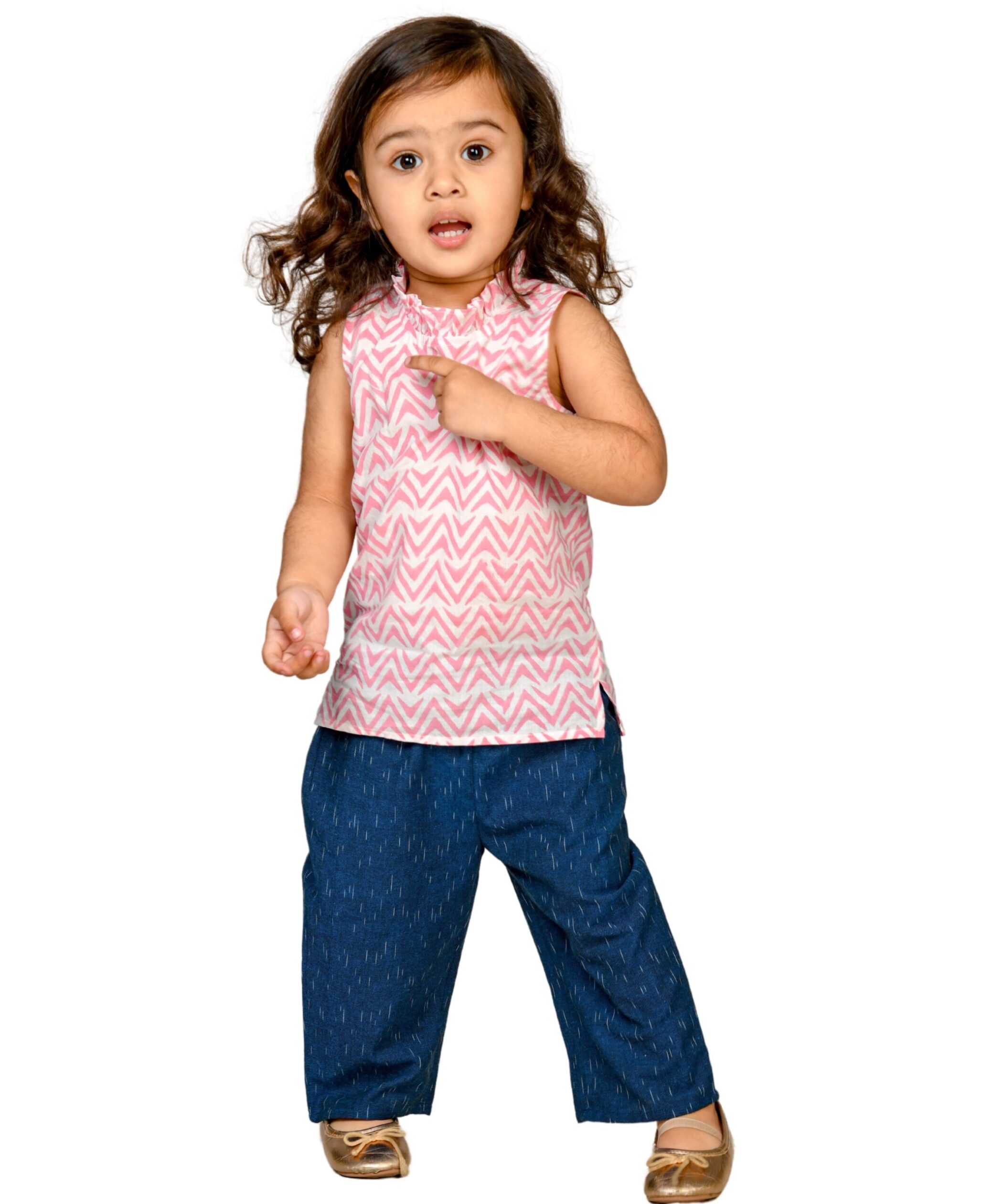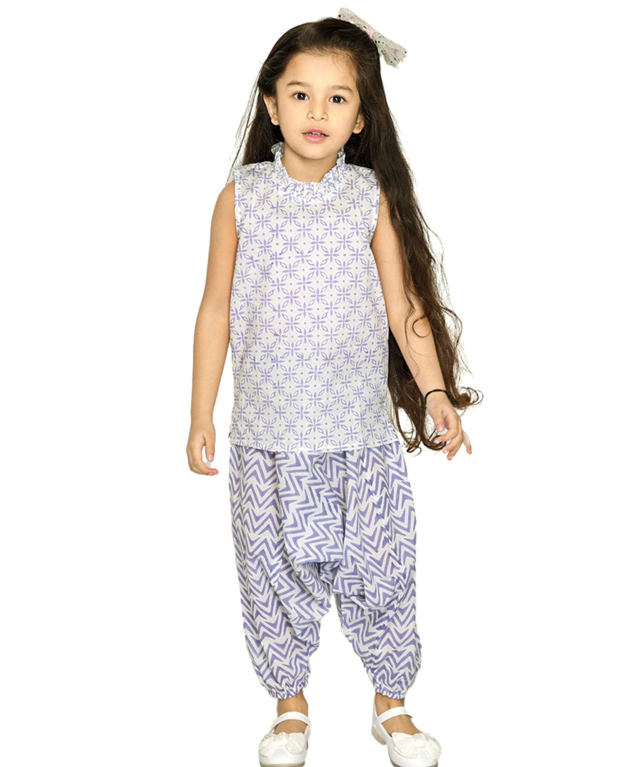 Kids Clothes Girls Cotton Top Pant Combo Set – Blue & White:Pink