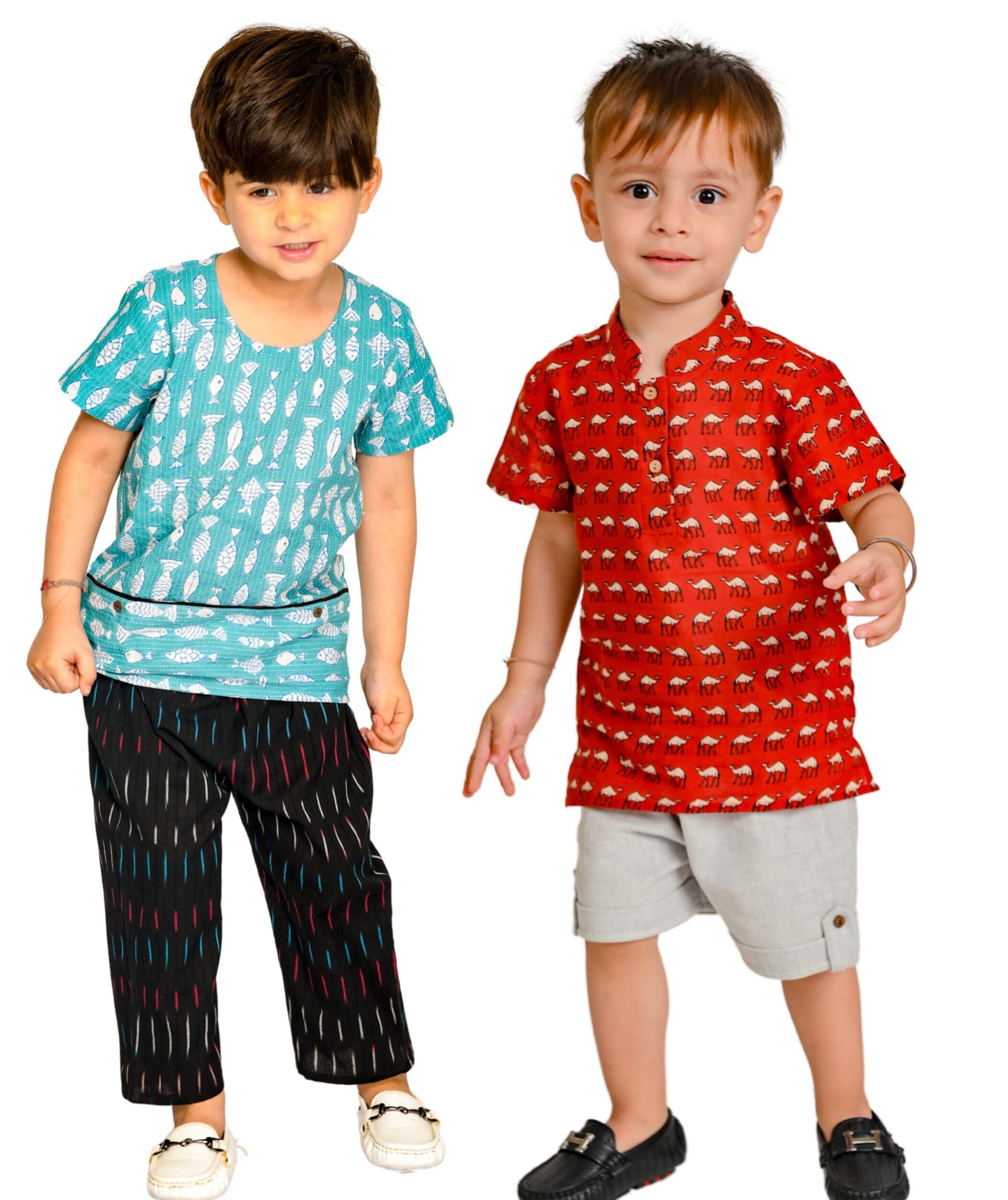 Kids Boys Cotton Shirt Pant Shorts Set – Blue:Black & Red:Grey