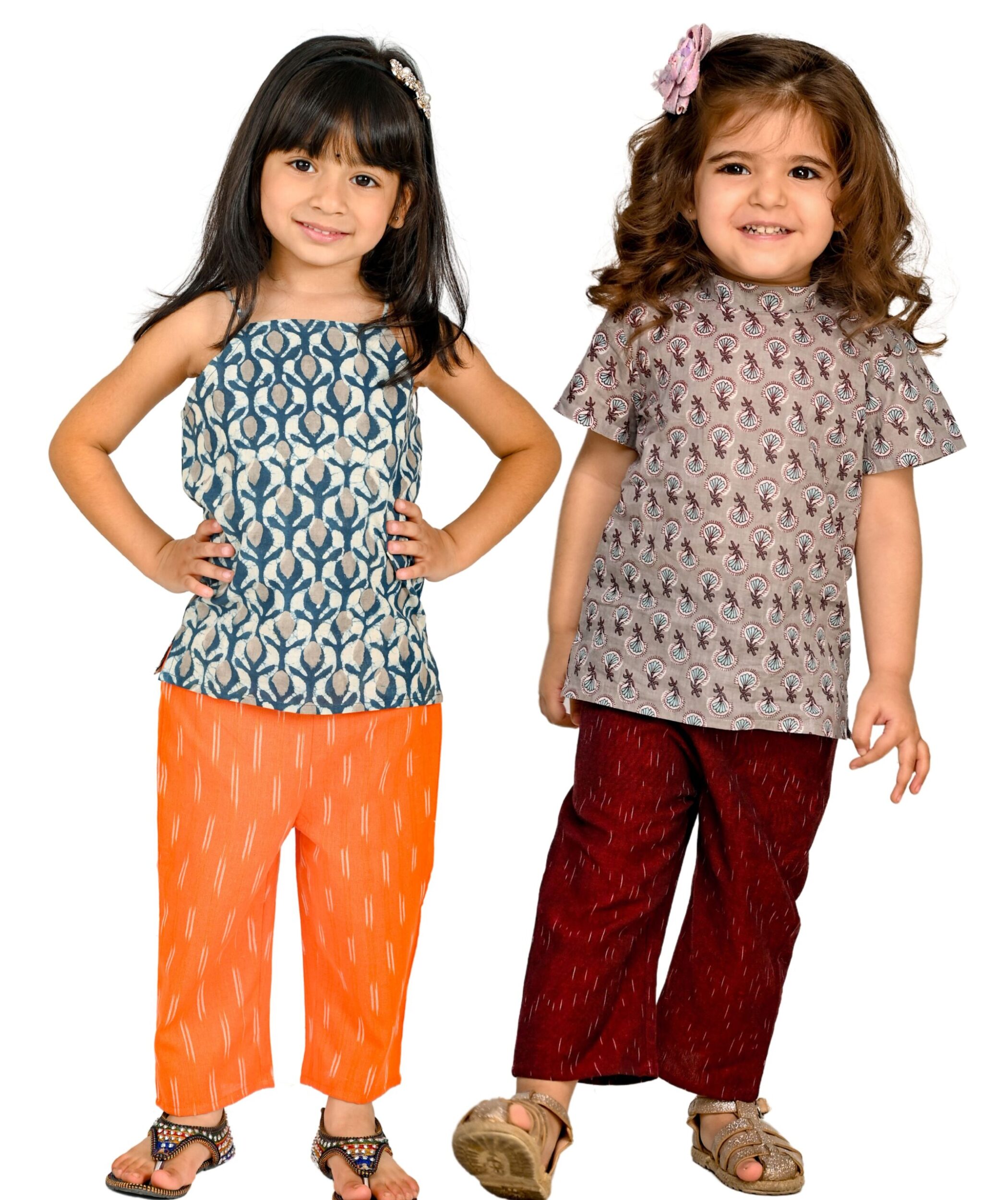 Baby Girls Summer Outfits Top Pant – Blue:Orange & Grey:Maroon