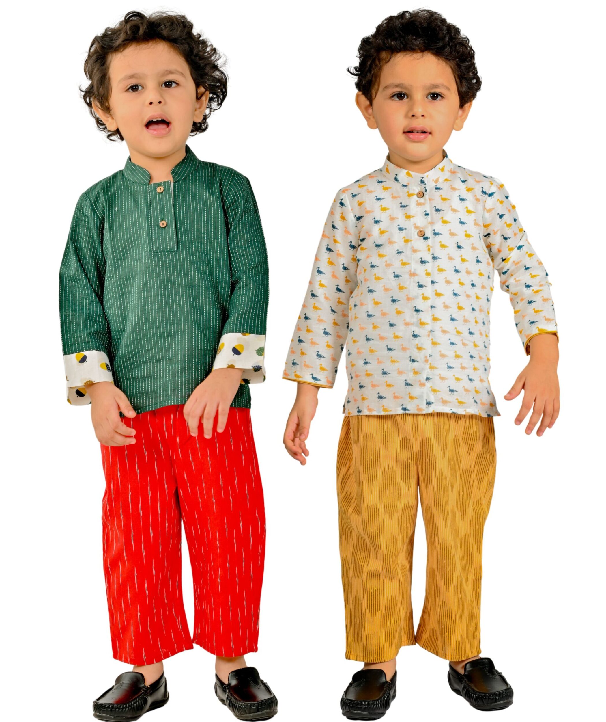 Kids Boys Clothes Cotton Shirt Pant- Green:Red & White:Yellow