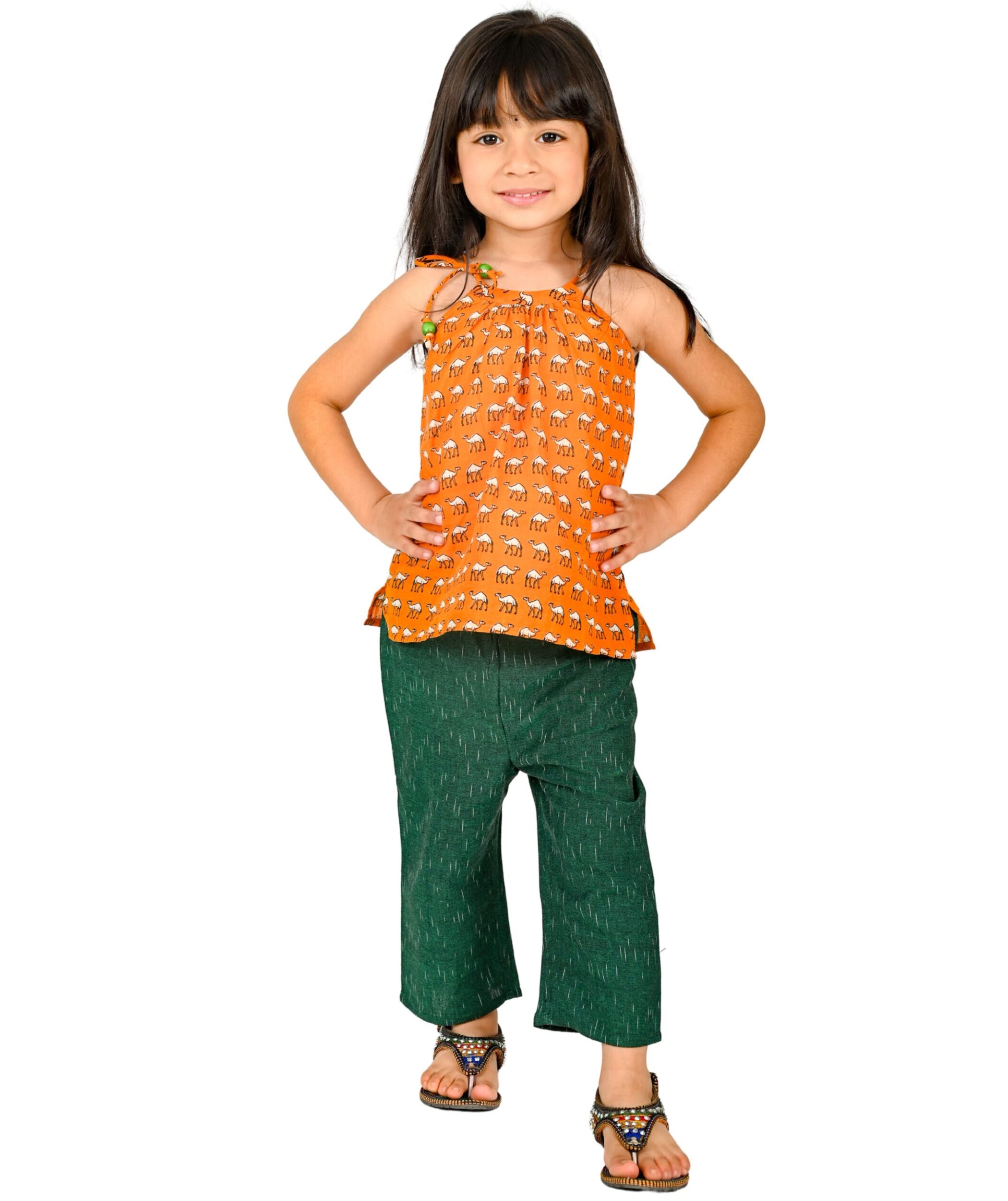Baby Girls Summer Clothes Cotton Top Pant Set – Orange:Green