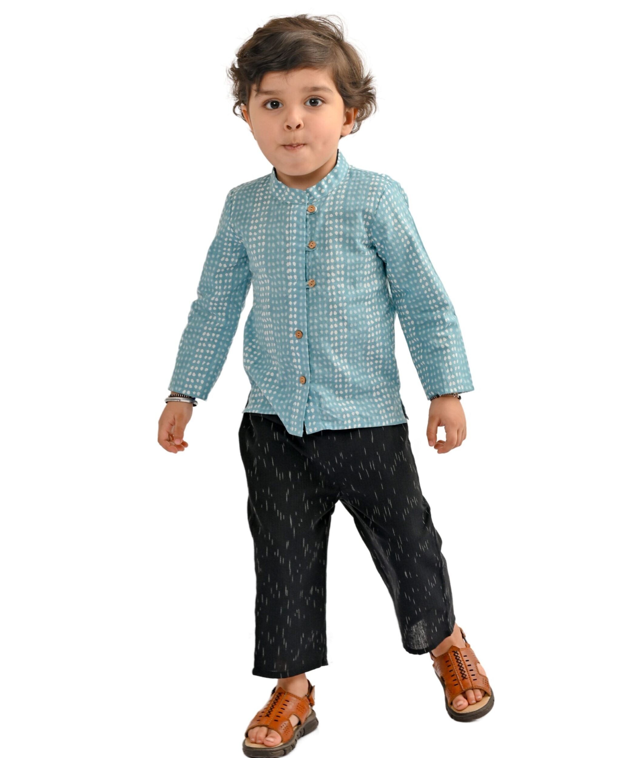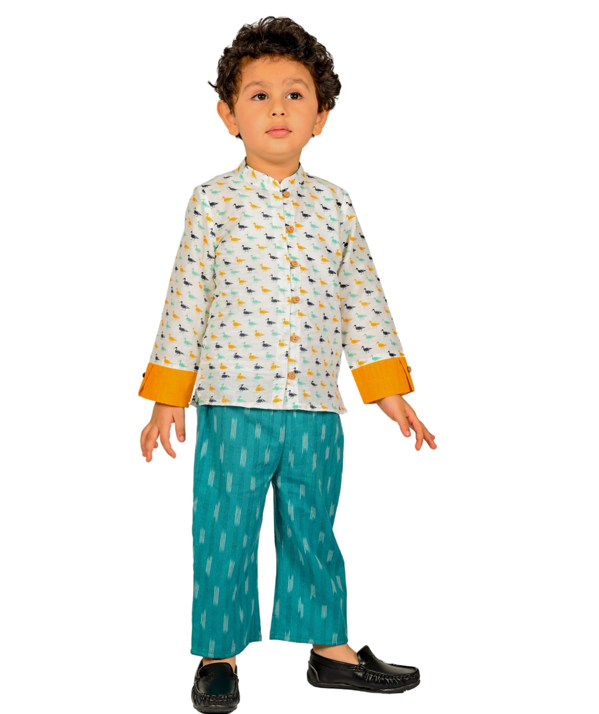 Kids Boys Clothes Festive Wear Shirt Pant Cotton Set – Yellow:Blue