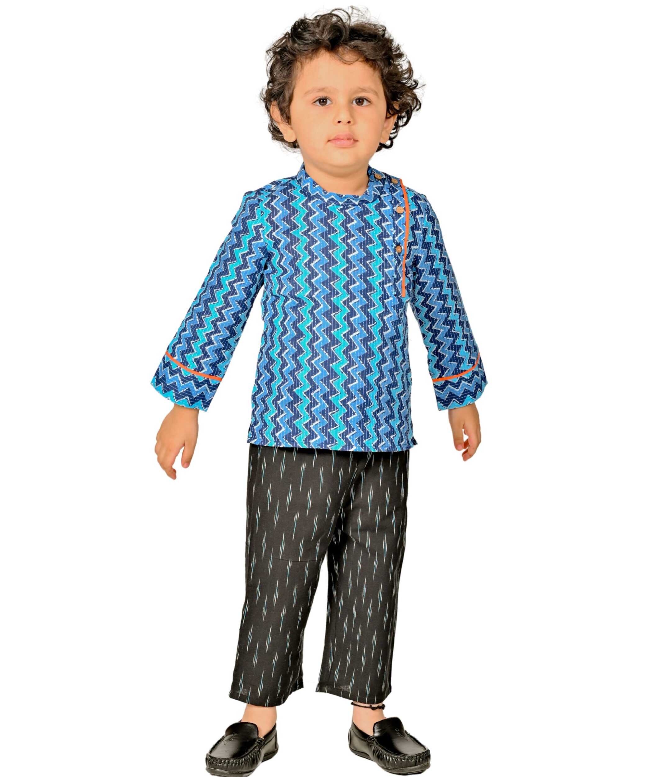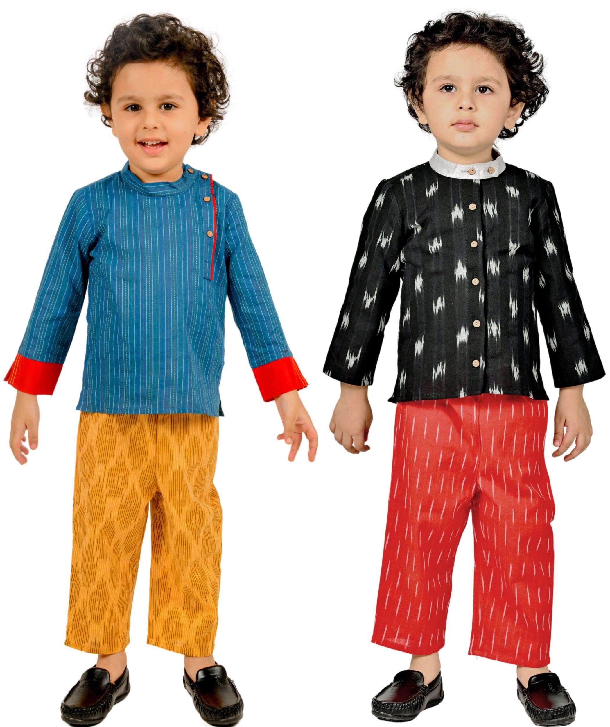 Kids Boys Cotton Shirt Pant Set – Blue:Yellow & Black:Maroon