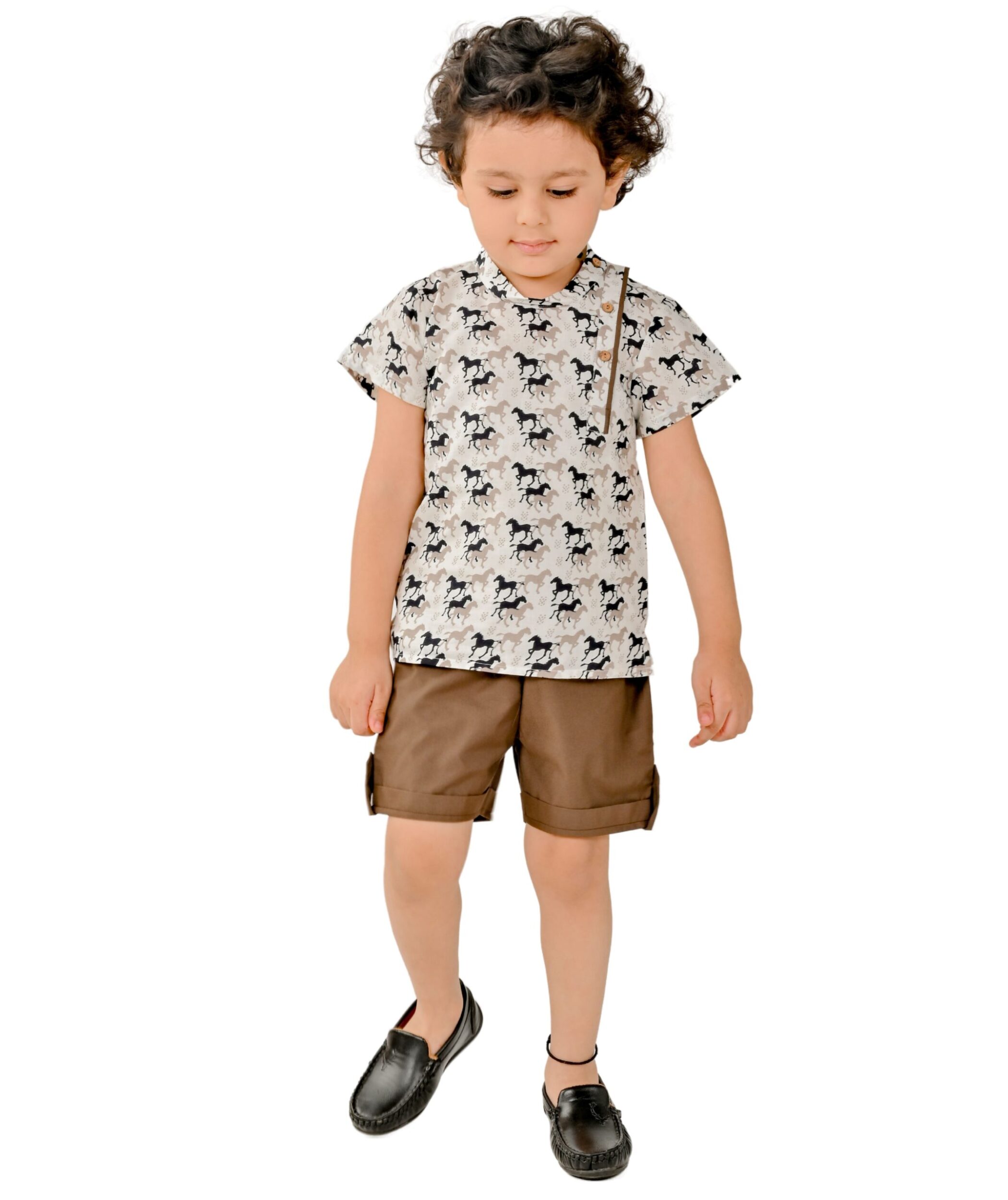 Baby Boys Summer Clothes Cotton Shirt Shorts Set – White:Brown