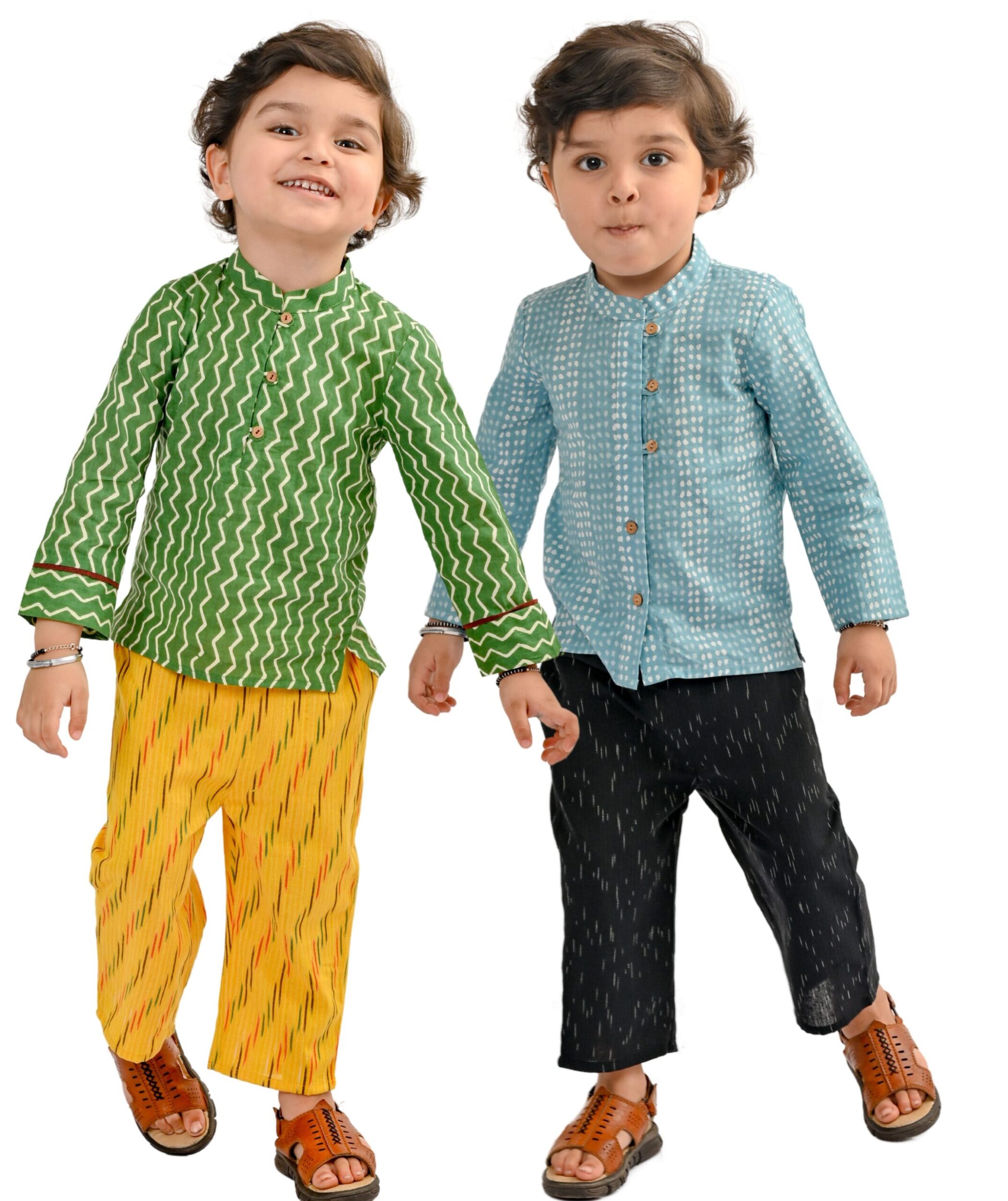 Baby Boys Cotton Shirt Pant Combos – Green:Yellow & Blue:Black